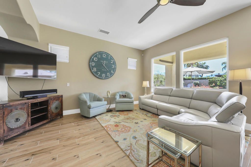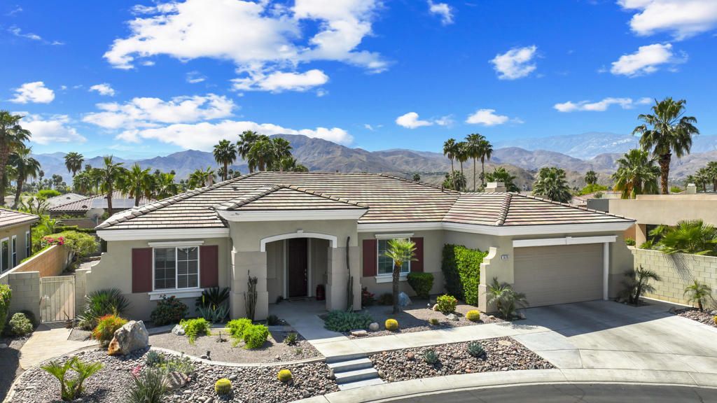 Light, space, and effortless indoor-outdoor living define this home in the gated community of Montage at Mission Hills--an intimate enclave of just 128 homes. The open floorplan is filled with natural light and flows seamlessly to a generous outdoor living area, where south and west mountain views set the backdrop for everyday living.Inside, new natural wood-look tile flooring runs throughout, anchored by a fireplace and a wet bar designed for easy entertaining. The primary suite offers a private retreat, featuring a spa-inspired bath with soaking tub, walk-in shower, dual vanities, and a large walk-in closet--along with French doors that open directly to the outdoor living space.Equipped with owned solar, zoned HVAC, and smart home features including a FLUME water leak detection system with automatic shut-off and app-controlled irrigation--bringing efficiency, protection, and control.The oversized backyard is designed for low maintenance, with easy-care landscaping and room to add a pool if desired--flexibility without the upkeep.HOA includes Social and Fitness Membership at Mission Hills Country Club, with access to club amenities (golf available separately). Start your morning with pickleball, then head to the veranda for lunch and a front-row seat to the energy of the club.Centrally located in the Coachella Valley--just minutes from Palm Springs International Airport, Michael's Cafe, Trader Joe's, and nearby theaters--this home delivers a resort lifestyle with the ease of lock-and-leave living.