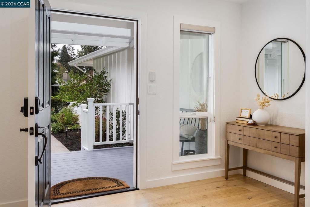 Located in the highly desirable Twin Creeks community of San Ramon, this beautifully updated single-story home blends farmhouse charm with modern design. Set on a well-maintained lot with mature landscaping, it offers inviting curb appeal, fresh exterior paint, and manicured landscaping. Inside, a bright open floor plan features wide-plank flooring, abundant natural light, and a spacious living area with vaulted ceilings that flows seamlessly into the dining space with wet bar and wine fridge. The updated kitchen is the heart of the home, showcasing a large center island with bar seating, stainless steel appliances, custom-integrated range, ample cabinetry, and a farmhouse sink overlooking the backyard. The private primary suite offers direct yard access and an en-suite bath with dual vanities and stall shower. Two additional bedrooms provide generous space and storage. Additional highlights include a powder room, spacious laundry room with sink, newer roof and HVAC, updated lighting, and fresh finishes. The backyard features a large deck with pergola, ramp access, storage shed, lush lawn, and garden bed area, perfect for relaxing or entertaining. Ideally located near shopping, dining, parks, top-rated schools, and I-680 access.