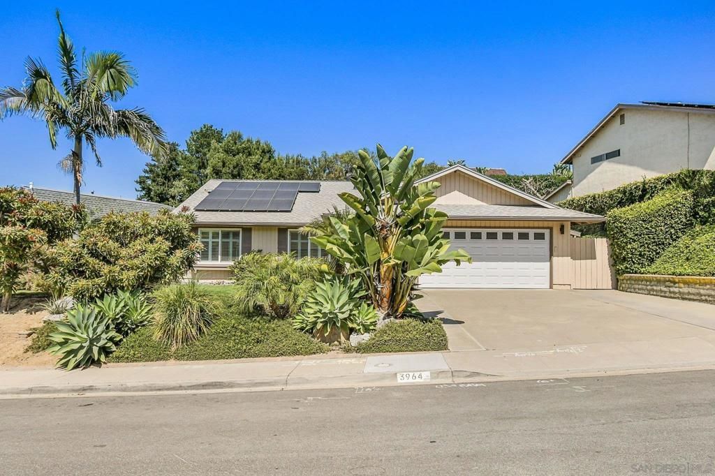 Charming single story home on a large lot in centrally located University City! A welcoming floor plan and thoughtful touches throughout provide for wonderful modern living and entertaining spaces. Enjoy peace of mind with a well cared for home boasting several recent upgrades including owned solar, newer roof and French oak wood flooring, plus stylish updates to the kitchen and bathrooms. Notice the light filled spaces, enhanced with multiple skylights and solar tubes, or the lovely tile fireplace in the living room. The dining area flows to the outdoors through the double sliding doors and into an incredibly spacious back yard with room for both outdoor dining and lounging areas. The kitchen invites you in with a beautiful backsplash and stainless appliances, and connects with an eat-in breakfast space, which could also function as a cozy family room. A large primary bedroom with an en-suite bathroom and a walk-in closet is located at the rear of the home, overlooking the back yard. The other two bedrooms are at the front of the house, and all bedrooms feature privacy shutters. A 2 car garage with space for laundry, a manicured front landscape with synthetic turf, and an EV charger on the side of the house round out the features. Located near highly rated schools and plenty of shopping and dining options, this University City home and neighborhood are worth a visit!
