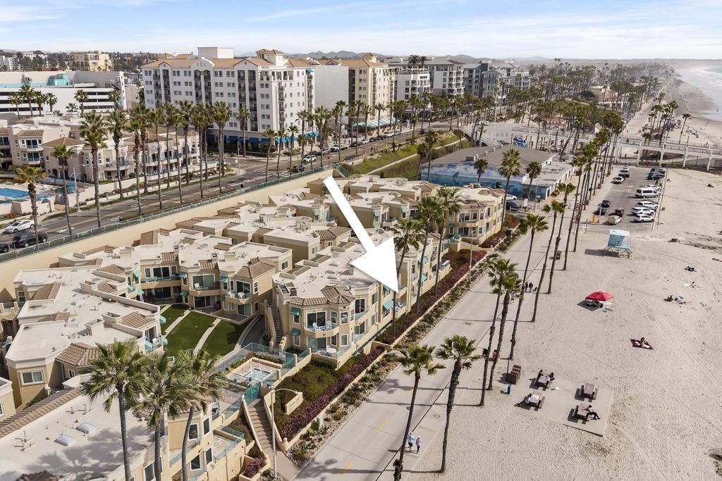 Experience breathtaking front-row coastal living at 400 N The Strand #27?a beachfront gem in the coveted San Miguel III community. This rare ground-level unit offers no-stairs access, making beachside living both luxurious and effortless. Enjoy panoramic white water ocean views and the soothing sound of waves from the comfort of home! Inside, the condo features fresh paint and tastefully updated bathrooms, creating a clean and modern coastal vibe. The open-concept living space is filled with natural light and opens directly onto an ocean-view patio?perfect for dining al fresco or soaking in the sunsets over the Pacific. As evening falls, take in the magical sight of the Oceanside Pier glowing against the night sky?an unforgettable view right from your living room or patio. The spacious primary bedroom features a walk-in closet and dual sink vanity. Additional highlights include in-unit laundry, a cozy fireplace, and two assigned underground parking spaces in a gated garage with elevator access. Ideally located just a short stroll from the Oceanside Pier, marina, and vibrant downtown, this home puts you steps away from Oceansides best dining, coffee shops, and boutique shopping. San Miguel III is a well-maintained beachfront community featuring two spas, beautifully landscaped grounds, and multiple access points to the sand. Whether you're looking for a peaceful beachfront escape or an unbeatable location to enjoy all that Oceanside has to offer, this is your chance to own a front-row seat to Southern Californias iconic coastline.