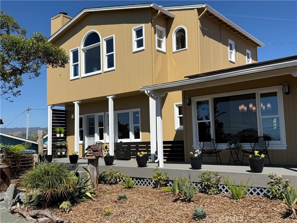 410 Kings Ave features 5 bedrooms and 4 baths, over 3,000sf in the high-end Morro Heights neighborhood. Four bedrooms on the main level, including a primary ensuite with a separate entrance, and second primary retreat upstairs complete with super luxurious extra-deep Japanese-style soaking tub. This home has been updated from top to bottom in the popular Modern Farmhouse style, blending seamlessly with preserved original character and high-end upgrades throughout. New flooring, lighting, Milgard windows, plumbing, and electrical create a fresh, move-in ready home. The kitchen combines style and function with custom Mastercraft cabinetry, a full Bosch appliance suite, huge island with Taj Mahal Quartzite counters throughout, and a skylight that fills the space with amazing natural light, opening into the breakfast nook for casual dining and easy flow. Additional spaces include a den, separate office, and living room, along with new electric fireplaces in the living room and two bedrooms. Views of Morro Rock, the ocean, and surrounding hills, add to the homes coastal charm. Set on a 10,000 square foot private double lot, the renovated and beautifully landscaped outdoor space features expansive front and back yards, expanded covered front deck, a new driveway, and stunning backyard water feature and tiki bar, perfect for gatherings. A detached two car garage provides ample room for parking, storage, or hobbies. The home is equipped with owned-solar for super low to non-existent electric bills and the downstairs primary with its own private entrance would make a perfect short term or long term rental. Located just minutes from the beach, trails, and downtown Morro Bay, this home offers a rare combination of space, upgrades, and coastal access in one of the areas most desirable neighborhoods.
