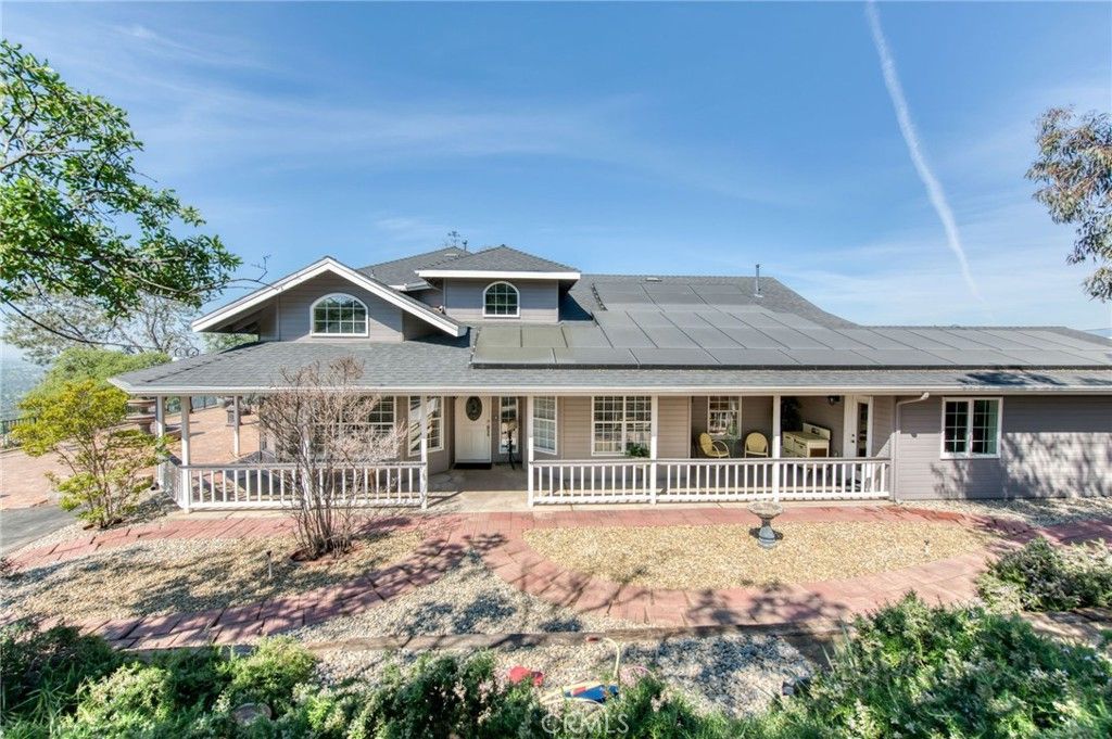 Elevate your lifestyle in this custom-built architectural masterpiece, a rare 5-bedroom / 2.5 bathroom executive estate with OWNED/PAID-OFF SOLAR on a sprawling 5.34-acre lot. Designed for those who demand both sophistication and serenity, this home captures breathtaking panoramic views of the Sierra Nevada Mountains and Valley floor from every window. Whether you're a professional seeking a quiet sanctuary or a family that loves to host, this property delivers. Bring your horse?the community has stables. Step inside to an expansive open-concept chefs kitchen with premium stainless steel appliances and two adjoining formal dining areas, creating seamless flow for entertaining. Soaring ceilings and rich hardwood floors lead into a stately room, perfect as a formal dining space or library. The primary suite is a true sanctuary with a spacious spa-like bathroom. A standout feature is the fully independent upstairs guest wing with private 2-bed, 1-bath quarters?ideal for multi-generational living, guests, or an au pair. Downstairs offers a perfect work-from-home suite with private entrance, bedroom, and two flex rooms for office, gym, or business use. Outside, a detached knotty pine studio is ideal for creative space or playhouse, plus a custom-built Tuffshed workshop with workbench and overhead storage. Outdoor living shines with a 1,000-square-foot Mediterranean tiled terrace with coastal range views, and a wrap-around porch offering privacy. Additional features include a large utility room, three walk-in closets, detached two-car garage, and enclosed carport. With a newer roof (2014), updated HVAC (2012), and a fully paid-off Generac whole-house generator, this home blends beauty with reliability. Located in Yosemite Lakes Park, enjoy HOA amenities including golf, equestrian center, pool, tennis courts, trails, saloon, and restaurant for $178/month.