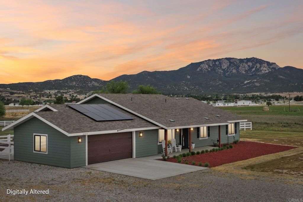 Welcome to a rare opportunity in Lake Riverside Estates, where newer construction meets usable land and true equestrian lifestyle. Built in 2025 and set on 2.57 flat, usable acres, this 4 Bedroom 3-Bath, single-story home with mountain views offers the space, functionality, and setting that are hard to find. Ideally located several lots from the paved main entrance and just a short distance to the community lake, pool, and amenities, the property combines convenience with privacy. Since completion, the property has been further improved with over $50,000 in upgrades, including more than 1,000 linear feet of vinyl fencing, horse corrals, expanded rear patio concrete, upgraded laminate flooring, and a 40-foot storage container with approximately 9-foot interior height, offering substantial additional storage! This thoughtfully designed 4-bedroom, 3-bath home with a versatile bonus room spans approximately 2,299 square feet and features an open-concept layout with quality finishes throughout. The main living area showcases granite countertops, soft-close cabinetry, stainless steel appliances, a walk-in pantry, and custom touches including faux wood beams, crown molding, and barn doors. The primary suite features a spacious custom 6x6 tiled walk-in shower, while the bonus room near the entry provides flexibility for a home office, playroom, or additional living space. A generously sized laundry room with an adjacent half bath functions well as a mudroom for everyday use. The usable acreage provides ample room for horses, RVs, trailers, and future improvements such as a barn or guest house (buyer to verify). Additional features include owned solar, high-efficiency HVAC system, fire sprinkler system, newer Septic and Well Systems, and an oversized approximately 677 square foot finished garage with electric vehicle charging capability. Covered front and rear patios offer comfortable outdoor living with scenic mountain views. This is the home in Lake Riverside Estates youve been looking for, if youre seeking space, recreation, and a true rural lifestyle with modern comfort!