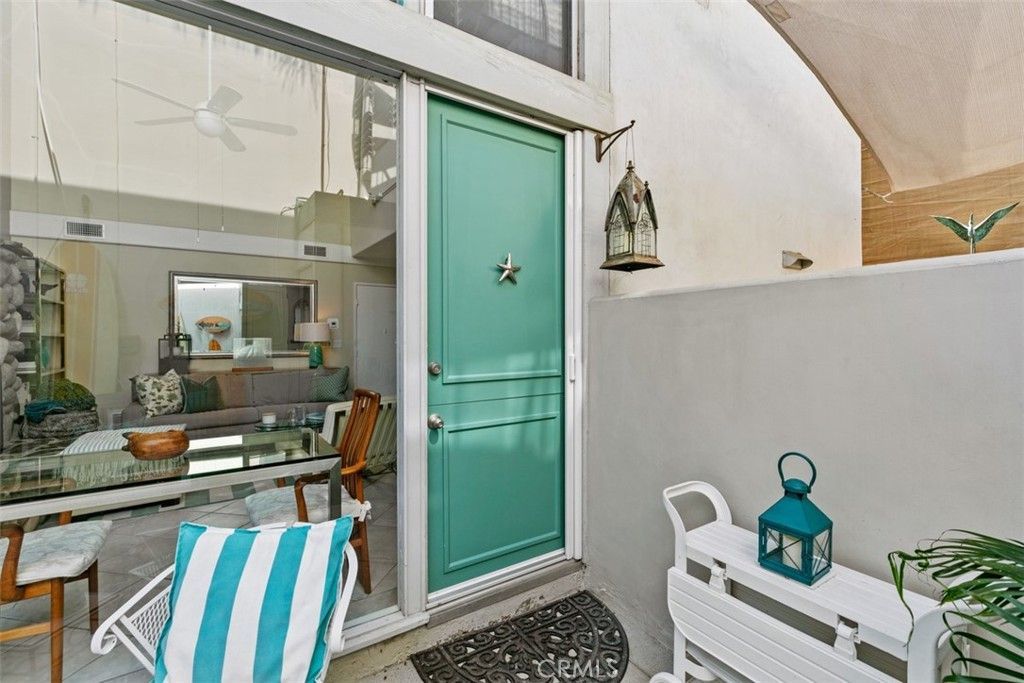 Live the Dream at the beach in this charming 3-bedroom and 2-bath back unit in desirable Corona del Mar Village community. Light, bright and airy, this home has an open floor plan and cathedral ceilings. Beautifully remodeled kitchen with quartz counter tops, classic subway tile backsplash, newer electric range oven and an open eating counter looks on to the living room. Spacious living room has dramatic ceilings with stunning floor to ceiling windows and a cozy natural stone fireplace. Three bedrooms are upstairs with two bathrooms. The primary bedroom is quite spacious with its ensuite bathroom. Private front patio leads to the dutch door for easy beach living. Inside laundry room goes to an attached garage with plenty of storage. Some of the best beaches, world-renowned restaurants and shopping are just minutes away.