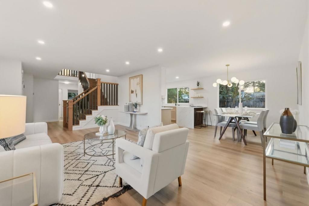 Welcome to this beautifully updated two-story home offering 4 bedrooms and 3 full bathrooms, with a highly desirable first-floor bedroom and full bath, perfect for guests or multi-generational living. With 1,949 sqft of living space on an expansive nearly 7,400 sqft lot, the home provides both comfort and room to grow. Recent permitted renovations include a fully remodeled kitchen and a stunning primary bathroom, thoughtfully designed with modern finishes. The home features durable vinyl flooring throughout, creating a clean and cohesive look. A newly installed staircase adds architectural elegance, while skylights fill the interior with abundant natural light. The kitchen is equipped with newer SS appliances, quartz countertops, breakfast bar, ideal for everyday cooking and entertaining. Major systems including heater, A/C, ceiling insulation have also been upgraded in recent years for improved comfort and efficiency. Step outside to enjoy the charming enclosed front courtyard, beautifully finished with classic brick flooring an inviting and private outdoor space perfect for relaxing or entertaining, especially kids friendly. Combining tasteful upgrades, functional layout, and a generously sized lot, this home offers a rare opportunity to enjoy comfort, style, and convenience.