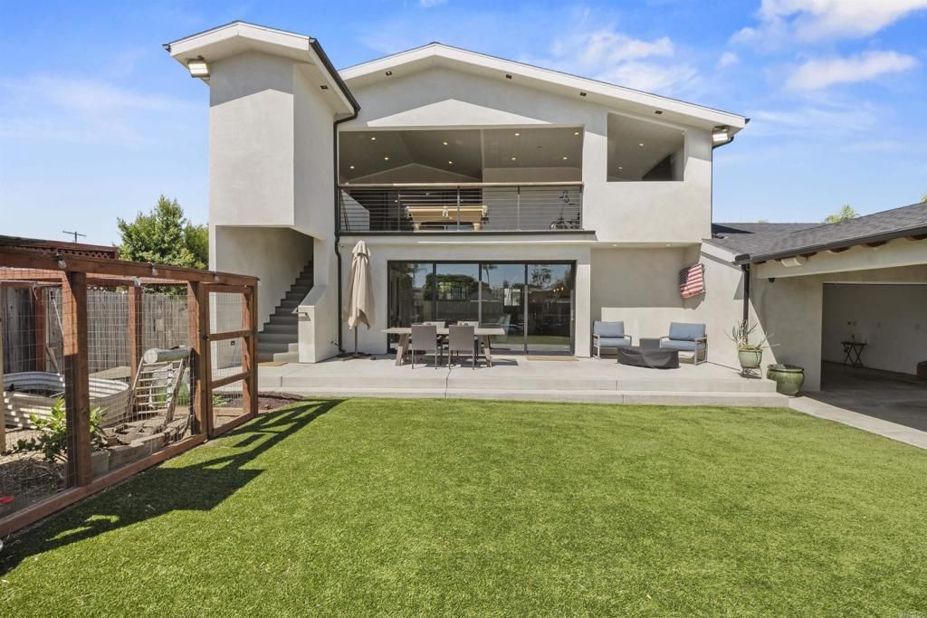 Completely rebuilt and expanded in 2026, this fully remodeled La Mesa home near SDSU offers approximately 3,000 sq ft of modern living while preserving its original 1949 character. Taken down to the studs, this turnkey property has been reimagined with high-end finishes, custom craftsmanship, and todays most desirable features. From the moment you step inside, natural light pours into a stunning open-concept floor plan designed for both effortless entertaining and everyday comfort. The heart of the home, a beautifully curated chefs kitchen, offers crisp white cabinetry, Quartz countertops, a sleek subway tile backsplash, and an expansive center island. The space flows seamlessly into the living and dining areas, where custom built-ins and a stunning 16-foot La Cantina door creates seamless indoor-outdoor living, opening to a private resort-style backyard. Step outside to your private oasis, where a sprawling 24x22 covered pergola, complete with ceiling fans, built-in audio, and multiple TV locations, sets the stage for unforgettable evenings and year-round Southern California living. The main level also offers a warm and inviting family room accented with shiplap detail, along with two spacious guest bedrooms. Upstairs, the primary suite is a true sanctuary. Vaulted ceilings, expansive windows, and an oversized sliding door open to a generous private balcony overlooking the backyard, an ideal place to start or end your day. The ensuite bath feels like a spa, featuring Quartz finishes, elegant ceramic tile, and a luxurious walk-in steam shower, complemented by a spacious walk-in closet. Also upstairs, youll find an additional bedroom and laundry room with ample storage and a utility sink.Additional upgrades include a fully integrated smart home system powered by Crestron controls lighting, motorized shades, whole-home audio, and security with surveillance. Energy-efficient upgrades, owned solar, a Tesla battery, and central vacuum system add both sustainability and ease to daily living. Perfectly positioned in La Mesa with close proximity to SDSU, shopping, dining, major freeways, and downtown San Diego, this is more than a home, its a rare opportunity to experience modern luxury, seamless indoor-outdoor living, and cutting-edge technology all in one unforgettable property at 4789 Harbinson Avenue.