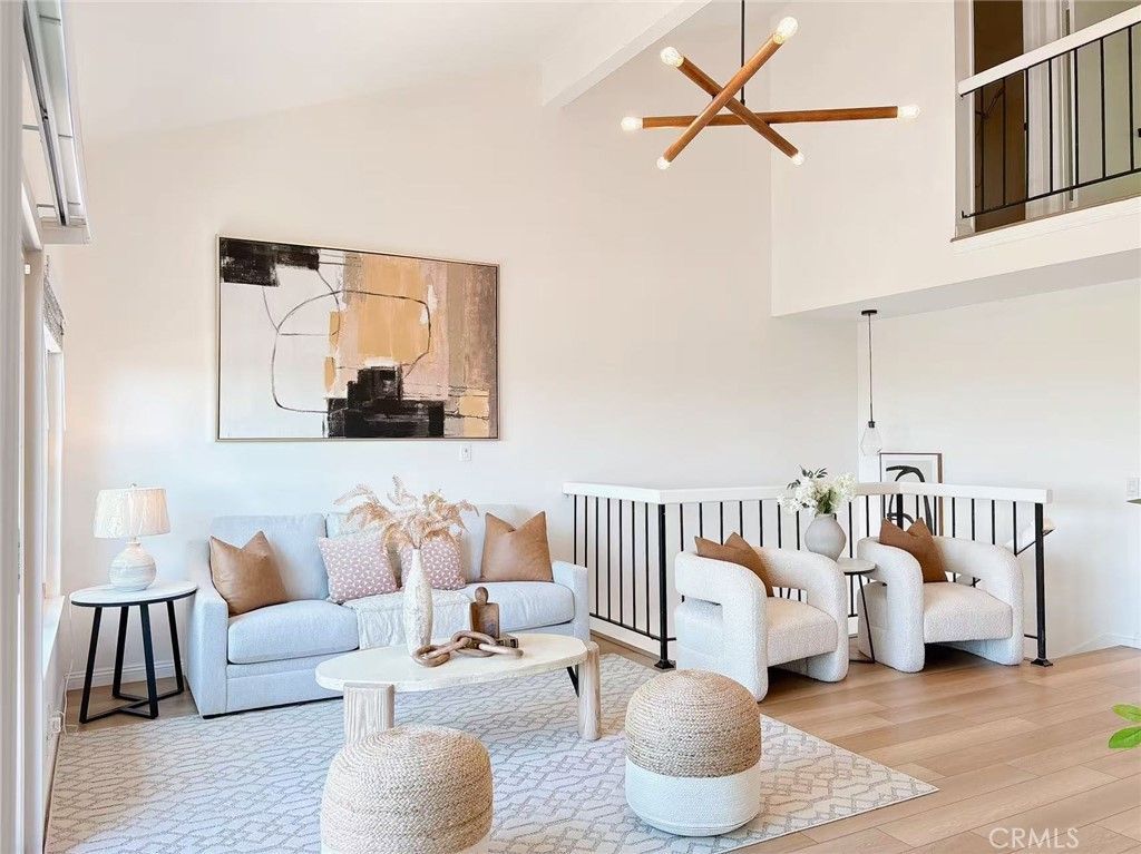 A Rare Offering with Truly Unparalleled Panoramic Views Across Los Angeles. This is one of the few homes in the community with sweeping, unobstructed views from Downtown Los Angeles to the Palos Verdes Peninsula. The scenery changes throughout the day, with especially beautiful sunsets. On the Fourth of July, you can even enjoy fireworks across the city right from home. Fully renovated in 2022, this move-in-ready home offers updated vinyl flooring and tile, a newer water heater, and a clean, contemporary aesthetic throughout. The main living area is bright and open, with high ceilings and plenty of natural light. The layout connects the living room, dining area, and kitchen, making it comfortable for both daily living and entertaining. A private balcony offers a great place to relax and enjoy the views. The primary bedroom is on the main level and includes its own quiet patio, perfect for relaxing or having a morning coffee. Upstairs, there are two additional bedrooms, a full bathroom, and extra storage space, offering flexibility for guests, family, or a home office. The communitys HOA amenities include a pool and spa. Located close to shopping, dining, and major commute routes (Highway 605 and 60), this home offers a great combination of views, comfort, and convenience. One of the best view homes in the community, a rare opportunity you dont want to miss!