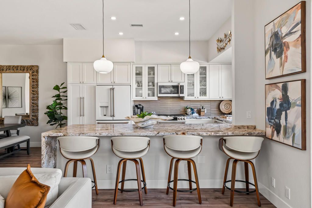 Welcome to this luxurious turnkey furnished condo inside Mission Hills CC East, FEE land not on lease. A beautifully remodeled desert retreat offering panoramic mountain views and perfectly positioned above the 5th green at the Westin Pete Dye course. This unit captures breathtaking vistas from inside your kitchen, living and exterior space that includes a spacious built in BBQ bar and ample seating with this extended patio. Enjoy the outdoor setting to include stunning desert sunsets, Outdoor TV entertaining area and watching the golfers with their golf shots. While you step inside to a completely updated property featuring a striking kitchen showcasing Cafe GE appliances, built in dry bar with wine refrigerator, stylish finishes and a layout designed for everyday living and has ample entertaining space, new flooring, fresh paint, modern baseboards, built in electric fireplace which creates a warm contemporary focal point in the living space. Remote control blinds allow this easy to keep the window treatments up for the day to enjoy these views. The bathrooms have been renovated with elegant, modern touches, while the 3rd bedroom has been used as a functional office, ideal for remote work or a private den.The outdoor living is just as impressive, with the extended patio, built in BBQ and an electric awning to add shade or additional outdoor roomy feel. The perfect setting to relax, entertain and take in the sweeping views. Additional upgrades include newer HVAC, water heater, providing comfort and peace of mind. New inside doors and entry door. This move in ready home blends modern upgrades with resort style living in one of the most desirable country clubs. Memberships available for social and golf. Located near world class golf and tennis..