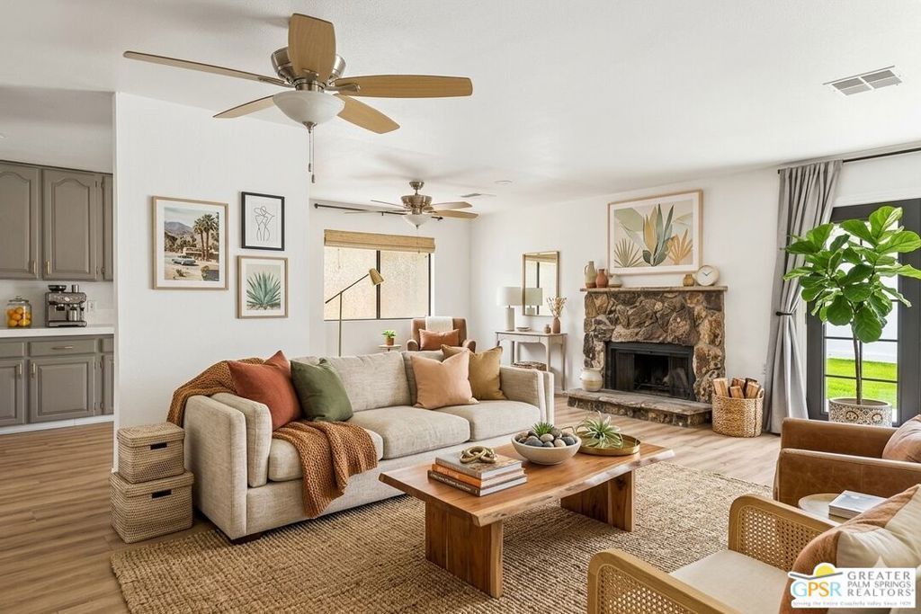 Welcome to 52925 Avenida Vallejo, perfectly located in the desirable mid-Cove area. This charming home offers a seamless blend of comfort and modern style, featuring durable vinyl flooring throughout and elegant quartz countertops in the kitchen, wet bar, and bathrooms. The updated kitchen is equipped with stainless steel appliances, providing both functionality and a sleek, contemporary feel. The bathrooms have been thoughtfully refreshed, adding to the home's move-in-ready appeal. Ideally situated just minutes from Old Town La Quinta, you'll enjoy easy access to local dining, shopping, the popular farmers market, and a variety of scenic hiking trails, perfect for embracing the vibrant desert lifestyle. *One photo of the living room is virtually staged.