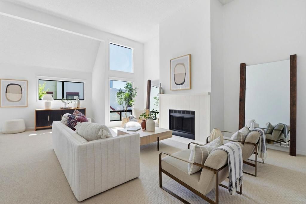 Experience nature and serenity as you step into this spacious, chic, top-floor, single-level, corner condo with views of green foliage and meandering waterways. Dramatic vaulted ceilings, skylights, and picture windows flood the home with natural light. The living room flows to one of two balconies overlooking the water and is great for entertaining or unwinding. The primary bedroom is oversized with soaring ceilings, wall-to-wall closets, and a secondary fireplace. Both bathrooms were just remodeled with brand new vanities, tile floors, sinks, faucets, and light fixtures. The kitchen features a breakfast nook and pantry and the dining area has a new chandelier. The walls have been freshly painted and new cozy Berber carpets were just installed. There is convenient side-by-side laundry in the hall. One assigned parking spot and storage closet are located in the shared, gated, garage just below the unit. The complex has a clubhouse and 2 swimming pools with jacuzzis for residents to enjoy along the water. Shorebird Circle in Redwood Shores is close to shopping, restaurants, daily essentials, bay front walking trails and cycling paths. Located in Silicon Valley, the Shores offers easy access to internationally recognized companies, major commuting routes, and highly ranked schools.