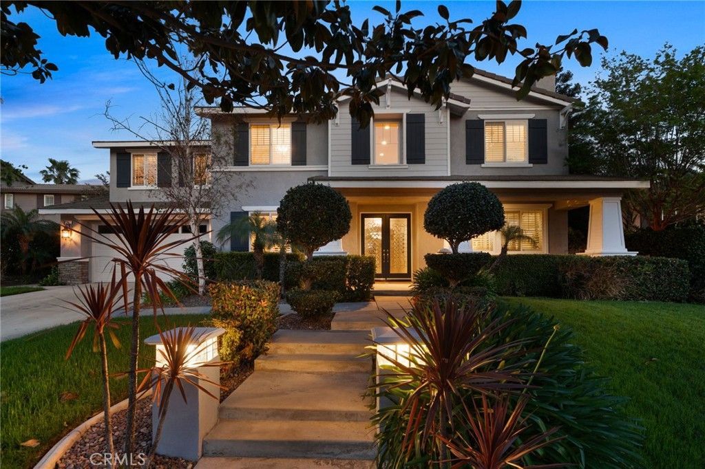 Perched on a cul-de-sac in one of Rancho Cucamongas most sought-after neighborhoods, this beautifully appointed residence spans nearly 4,000 square feet and captures breathtaking mountain views in the shadow of Cucamonga Peak. With no HOA, a four-car garage, grand dual leaded-glass entry doors, a covered front porch, and a resort-inspired backyard with pool, spa, and expansive pergola, the home offers an exceptional blend of comfort, scale, and timeless appeal. Inside, rich hickory pecan flooring, vaulted ceilings, arched hallway entrances, elevated light fixtures, dual pane windows, and plantation shutters enhance the elegant yet inviting interior. Formal living and dining spaces with fireplace flow into an open kitchen and family room anchored by a second fireplace, while the kitchen features a large center island, abundant cabinetry, built-in desk, walk-in pantry, and oversized laundry room with sink. A main-level bedroom with glass French doors and walk-in closet offers flexibility for guests, office use, or multigenerational living, with a nearby powder room. Upstairs, a dramatic catwalk leads to a generous loft with a built-in refreshment center with sink, mini fridge, and storage, ideal for a lounge, home theater, or home school setup. Three additional secondary bedrooms include one with a built-in desk and a shared hall bath with dual sink vanity, plus a Jack and Jill bath adjoining two bedrooms. The spacious primary suite is a true retreat with fireplace and sitting area, oversized walk-in closet, a separate retreat currently used as a gym, and recessed ceiling details that add height and dimension. The spacious ensuite bath features dual vanities, a large jetted tub, and separate walk-in shower. Ideally located near highly acclaimed Golden Elementary, Day Creek Intermediate, and Los Osos High School, with ease of access to Etiwanda Preserve, 210 freeway, Victoria Gardens, Chaffey College, and Quakes Stadium, this exceptional home delivers luxury living in a premier Rancho Cucamonga setting.
