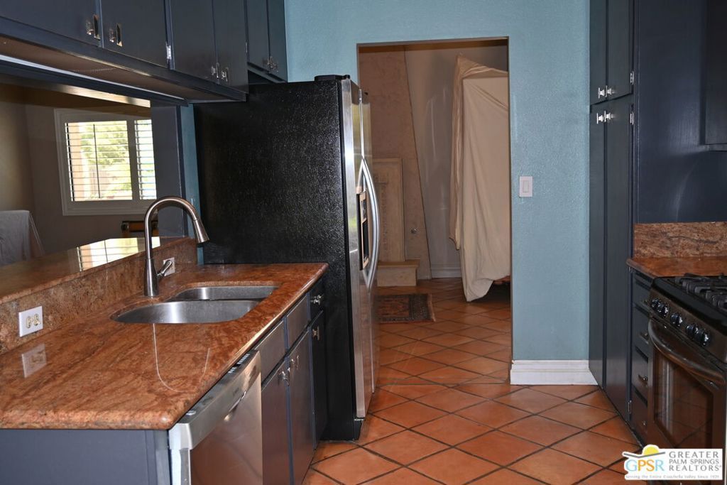 Live the Palm Springs, CA lifestyle today. This property is centrally located on a quiet cul-de-sac and ready for you to fix up or move in. Lot large enough for a pool, but for now there isn't a costly pool to maintain, just a great open living space and back yard. Finished 2 car garage with laundry and direct access to the living room. Ground floor, no steps. All fees paid and land lease extended to 2066 at reasonable COL adjustments every 5 years. Lease land is a better buy than owning the land, it also reduces your property taxes. West facing with sun rising in east makes the enclosed patio the perfect place to enjoy morning breakfast from the nearby galley kitchen. A great buy in central Palm Springs.