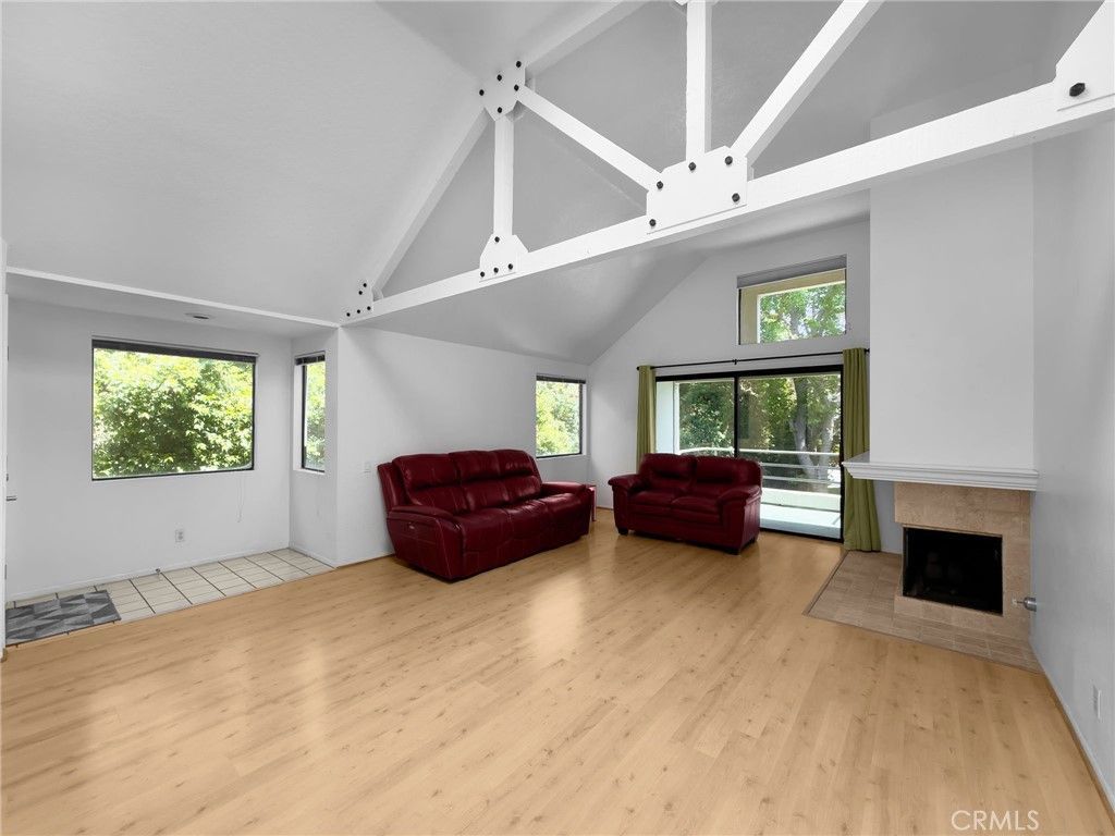 Welcome to this light-filled and inviting one-bedroom, one-bath home, nestled in a peaceful setting surrounded by mature trees. Step inside to soaring 11-foot ceilings with open beams and skylights that bring in an abundance of natural light, creating a bright and uplifting space youll love coming home to. The cozy living room features a fireplace and opens to a private balcony?perfect for relaxing and enjoying the outdoors. The kitchen offers white cabinetry, granite countertops, and plenty of storage, flowing easily into the dining area with bar seating and its own skylight, making everyday living and entertaining feel effortless. The spacious primary bedroom is a true retreat, featuring high ceilings and a large closet that provides ample storage. Warm bamboo flooring, in-unit laundry with full size washer and dryer with additional storage, inside storage closet and a private deck storage closet. This home blends comfort, charm, and convenience beautifully offering a space that truly feels like home the moment you walk in. Includes a 1-car garage and ample guest parking. Close to parks, shopping, restaurants and El Modena Wilderness area. Your own private retreat in the highly desirable Villeurbanne community of Orange. Hurry, won't last!