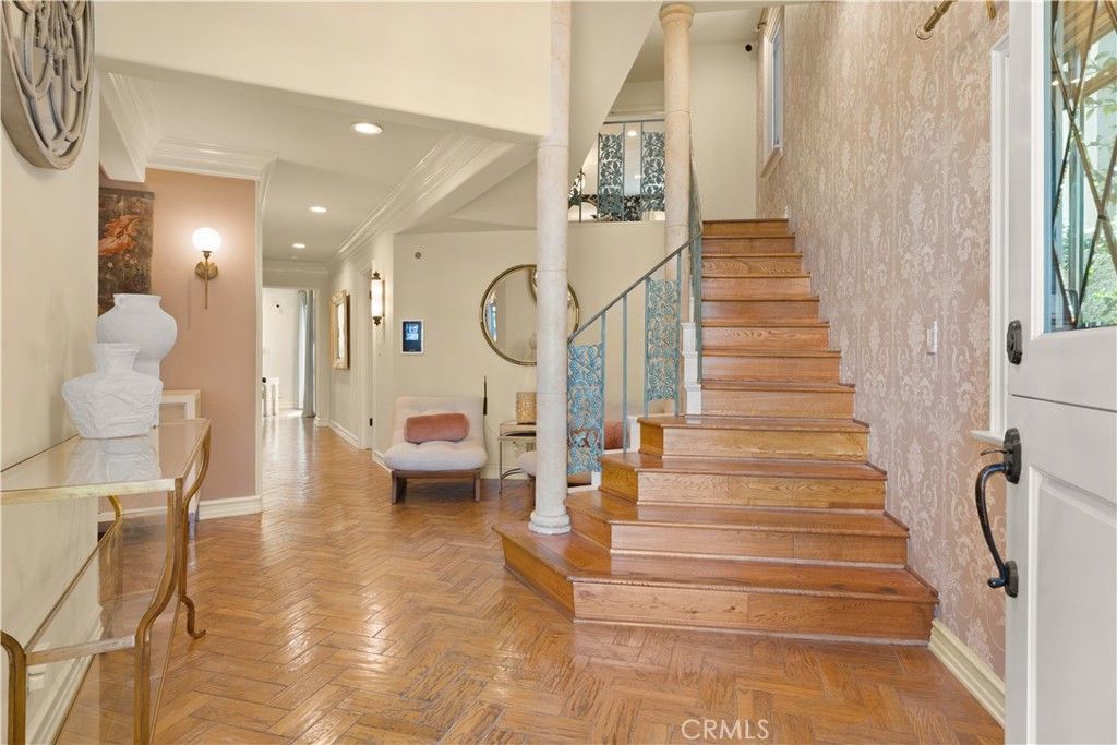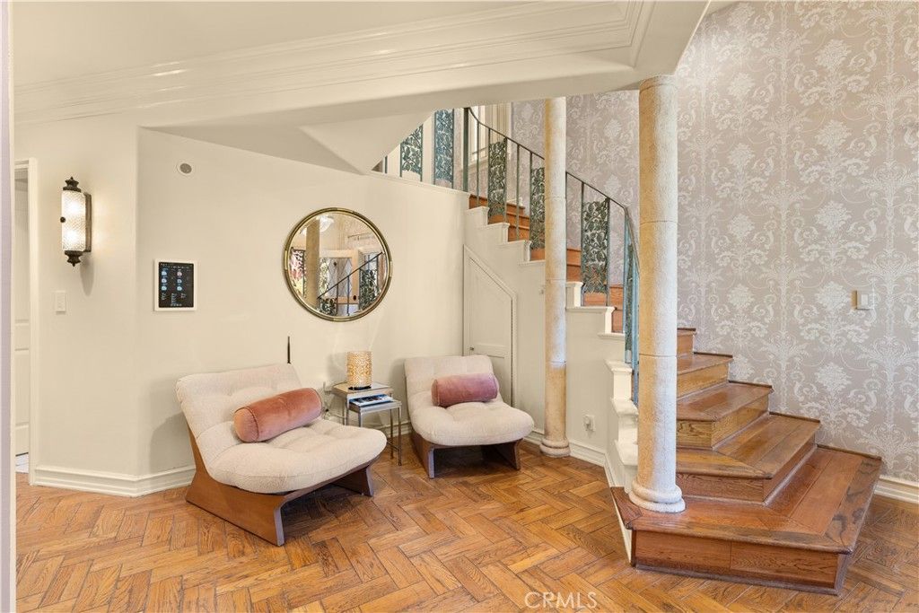 Experience refined coastal living in this exquisite French Provincial tri-level home, ideally positioned in exclusive Naples Island of Long Beach. Just steps from the scenic waterways and moments from world-class dining, this beautifully appointed residence offers timeless elegance with flexible furnishing options to suit your lifestyle. The first level welcomes you with a grand entry that opens to a formal living room featuring soaring vaulted ceilings, a fireplace, and a wet bar, perfect for entertaining your guests. The formal dining room showcases a stunning coffered ceiling with decorative floral inlays, and a stunning chandelier adding a touch of sophistication. A spacious eat-in kitchen anchors the rear of the home, complete with a large center island and prep sink, full suite of appliances, and direct access to a private patio with built-in BBQ, ideal for alfresco dining. A guest powder room, indoor laundry, and direct-access two-car garage complete this level. The second level offers three bedrooms and a large family/media room with its own wet bar and wine refrigerator. One of the bedrooms features an en suite bath, while another versatile space toward the rear adapts beautifully as a private bedroom, executive home office, or personal fitness studio, perfect for today's flexible lifestyle. A second full bath serves the remaining rooms. Ascending to the third level, you'll find the primary suite, a serene retreat featuring a fireplace, walk-in closet, and a newly remodeled spa-inspired bath with floor-to-ceiling tile, a floating vanity, modern fixtures, and an expansive dual-head walk-in shower. The entire suite is designed for privacy and comfort, separated from the rest of the home. A few steps above the primary suite leads to the rooftop deck, an entertainer's dream with panoramic 360ยบ views of Naples Island, comfortable patio seating, and a gas fire pit that is perfect for sunset gatherings or evening relaxation. This exceptional home combines timeless European charm with modern amenities, all within Naples Island's coveted waterfront enclave, one of Southern California's most distinguished residential communities.