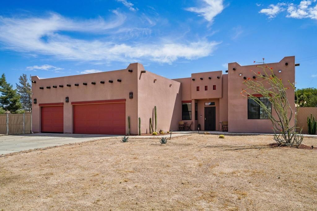 Discover a rare opportunity to own a custom-built Santa Fe-style home in the highly sought-after Sky Harbor neighborhood of Yucca Valley. This spacious 4-bedroom, 2-bath residence sits on over half an acre, offering a beautiful balance of comfort, style, and peaceful desert living.Step inside to soaring ceilings and an open-concept layout designed for both everyday living and effortless entertaining. Ceramic tile flooring flows through the main living areas and bathrooms, while newly installed luxury vinyl plank flooring adds warmth and durability to the bedrooms and closets.The thoughtfully updated kitchen features refreshed cabinetry, granite tile countertops, and a large walk-in pantry--perfect for both daily use and hosting gatherings. The inviting living area is centered around a cozy gas fireplace with a wall-mounted TV setup, creating a comfortable space to unwind. Additional upgrades include a soft water system and reverse osmosis system for added convenience and quality.The generously sized primary suite offers a relaxing retreat, complete with dual sinks, a spacious layout, and a walk-in closet. Each bedroom is equipped with ceiling fans and mirrored wardrobe doors, combining comfort with a touch of style.An indoor laundry room conveniently located just off the kitchen leads to the attached 3-car garage, while the extended driveway provides plenty of additional parking.Step outside to enjoy a fully fenced backyard with RV parking and rear vehicle access. The covered patio and newly added concrete create an ideal outdoor space for entertaining or simply enjoying quiet evenings under the desert sky.Located just minutes from the Black Rock Canyon entrance of Joshua Tree National Park, and within walking distance to scenic hiking trails and a local dog park, this home truly captures the essence of high desert living.