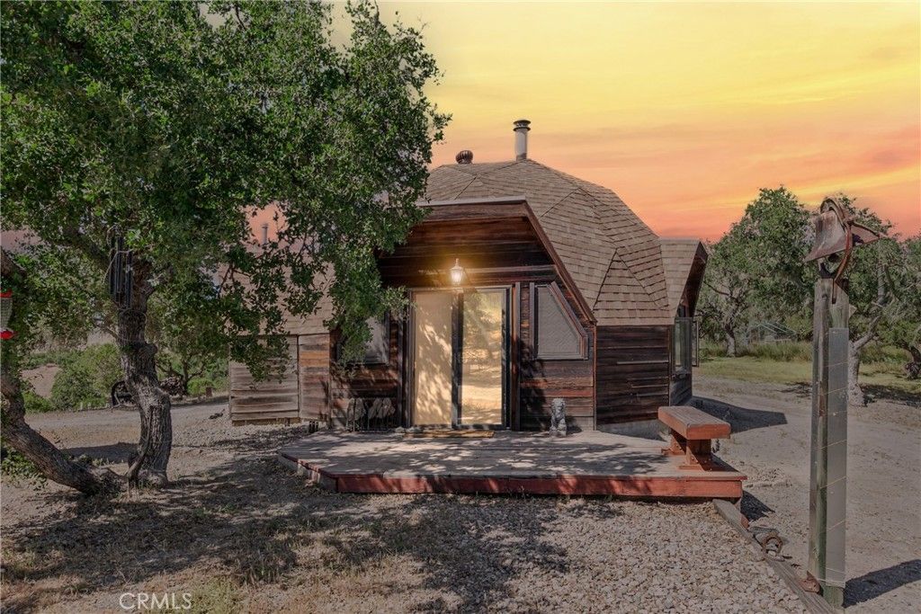 Enjoy peaceful, off-grid living on this fully fenced 24± acre property with panoramic views of Lake San Antonio and the surrounding hills. Located approximately 30 minutes from Paso Robles, this property offers privacy, space, and accessibility. The 788± sq ft geodesic dome home features 1 bedroom, 1 full bathroom, and a sleeping loft accessed by a spiral staircase. Interior highlights include a wood-burning stove, bar area, and a functional kitchen with propane cooktop and built-in oven. Designed for sustainable living, the home is powered by solar. Recent improvements include a new roof with a transferable 30-year warranty (installed February 2025) and a newly drilled well (approx. 550 ft deep) with a 100 ft standing water level. Additional features include a screened BBQ gazebo, pump house, storage shed, and a shipping container for additional storage. The property consists of two parcels (12± acres each) being sold together. Zoning allows for up to four homes, offering potential for a multi-residence setup or future development. Ideal for those seeking a private retreat, full-time residence, or investment opportunity with exceptional views.