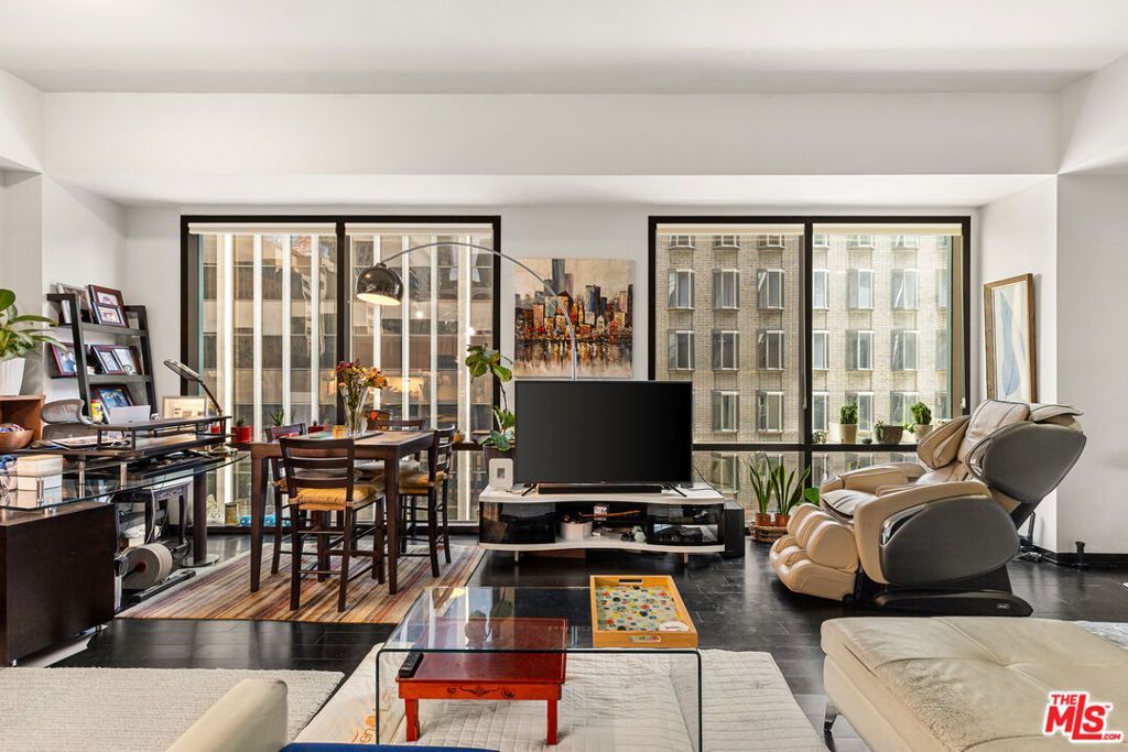 Welcome to the Hope Street Lofts. Perched on the 7th floor, the highly desirable end unit is a harmonious blend of modern elegance and urban sophistication. The open floor plan loft boasts floor-to-ceiling glass walls, tall gallery walls, 12-foot ceilings and warm dark hardwood floors. The East facing condo is illuminated by an abundance of natural light. The sleek kitchen features updated cabinetry, granite countertops, stainless steel appliances and a dishwasher. The bathroom features a soaking tub. Washer/dryer are included! 1 unassigned parking space included in the parking garage - exclusive to the Hope Street Lofts, with an elevator bank giving direct access to the 11th floor as well as the lobby. Hope Street Lofts is a boutique art deco condo building with only 80-units. Building amenities include 24/7 security, front desk concierge, a fitness center, gameroom, a rooftop with panoramic Downtown views, a helicopter pad, sundeck, barbecue grills and a chic wet bar. The rooftop was recently redone and new furniture has been ordered. The HOA fee covers water, trash, gas, sewage, 24/7 security and maintenance of the common areas. Located in the Financial District and directly above the 7th Street Metro Station. Access the best of urban dwelling at your doorsteps! Enjoy the best of food and beverages at the trendy Javiers or Bottega Louie. Near michelin star restaurants, world class museums, concept coffee shops and endless entertainment options. Across the street from the Bloc and Joeys. Only 2 blocks from Whole Foods and the Broad Museum is a stone's throw away. Experience a night at the LA Opera or a concert at the Walt Disney Concert Hall - only 4 minutes away. Attend a Lakers game at Crypto Arena. Entertain family and friends at LA Live. Easy access to freeways and public transportation. Truly, the best location in Downtown L.A.