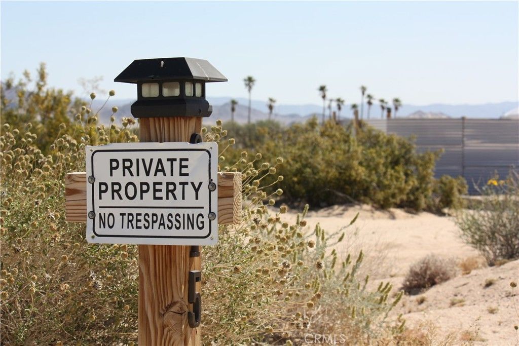 Encompassing 2.5 acres of prime land in the picturesque desert landscape of 29 Palms, this property embodies the essence of tranquility and possibility. Situated near water and electricity sources, this lot offers the convenience of nearby utilities while still retaining a sense of seclusion and serenity. Accessible via a well-maintained road that does not demand a 4WD/AWD vehicle, this property ensures ease of access for your everyday needs. A fenced area with a secure gate provides both security and privacy, while a designated fire pit and cooking area invite you to embrace outdoor living at its finest. Leading you to your own piece of desert paradise, this property is in close proximity to the renowned Joshua Tree National Park, offering endless opportunities for exploration and adventure right at your doorstep. Immerse yourself in the beauty of the desert landscape and make this land your canvas for future dreams and endeavors.