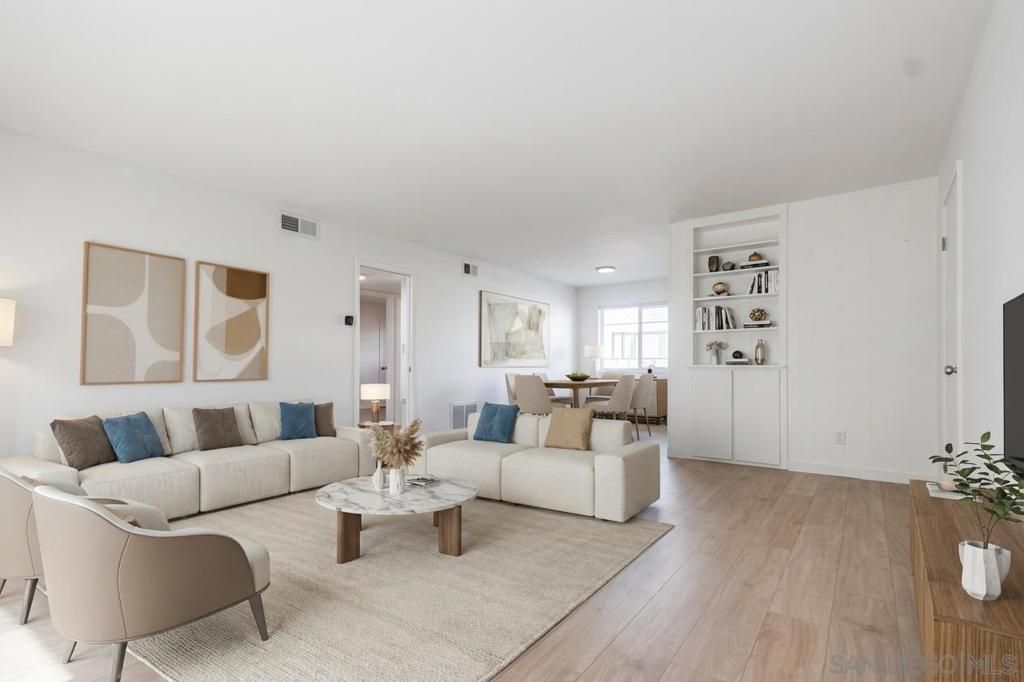 MUST SEE in person-Beautiful Bright and light-2 bed / 2 bath (lives like dual masters), 1,000+ sq ft. Remodeled baths, new windows, LVP flooring, baseboards, stainless steel appliances, and new furnace/AC. Ground floor with private patio. Small secure community with pool, new roof (2024), 1 assigned parking. Prime location?minutes to SDSU, freeways, shops & entertainment. Motivated Seller. Investors the Average rents $2500 per month. Some photos have been virtually staged to help buyers visualize the property potential