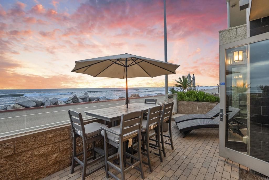 Experience true oceanfront living at one of Oceansides most coveted addresses?700 South The Strand. This stunning contemporary residence offers panoramic white-water ocean views creating a front-row seat to the Pacific and unforgettable sunsets. Designed with an open-concept, single-level floor plan with no stairs, the home offers easy, seamless access throughout. Indoor-outdoor living is elevated through expansive folding glass doors that open to a spacious private patio?perfect for relaxing, entertaining, or enjoying the beach lifestyle just steps away. The primary bedroom enjoys tranquil ocean views and direct access to the patio, offering a serene coastal retreat. The open kitchen is ideal for entertaining, featuring generous counter seating and a layout that flows effortlessly into the living and dining spaces. The residence includes two spacious bedrooms, two and a half bathrooms, private in-unit laundry, a large owners storage room, plus an additional private storage space conveniently accessed from the garage. Offered fully furnished and completely turnkey, this home is ready to enjoy immediately?just bring your suitcase. The HOA allows short-term rentals, making it an exceptional opportunity for both personal enjoyment and investment potential. Additional highlights include stair-free access, two assigned parking spaces in a gated, secure garage, and a striking contemporary building design that stands out along The Strand. Located moments from the pier, harbor, shops, dining, and all that downtown Oceanside has to offer, this is coastal luxury living at its finest. Don't miss your chance to own a slice of paradise!