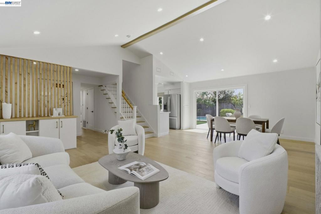 Simply stunning! Welcome to 7574 Birkdale Drive, a charming two-story single-family home located in one of Newark's most desirable neighborhoods * Magnificently updated, this 1,584 sq ft residence offers many modern upgrades that bring both style & comfort * A Tesla solar tile roof (8.1 kW capacity) ensures affordable energy * Step inside to discover a versatile layout: the first floor features 2 bedrooms +1 full bathroom, ideal for guests, or a home office * The 2nd floor offers 3 additional bedrooms, including a primary suite + add'l half bath * A cozy fireplace in the living room serves as the perfect gathering spot, while the on-trend kitchen offers ample cabinetry, modern appliances (induction cooking!) & quartz countertops * Recent updates include white oak engineered hardwood floors, vaulted ceilings, custom finishes & spa-like primary bathroom * Infrastructure improvements include new Lennox HVAC (heating + A/C), 200 amp service upgrade for extra power across the home & electric pool heater * The expansive lot is a true oasis, featuring a low maintenance yard with a spacious deck, turf grass backed by playground-grade padding & heated gunite pool * Commuters will appreciate proximity to the Dumbarton Bridge, I-880 & major tech hubs in Silicon Valley * Not to be missed!