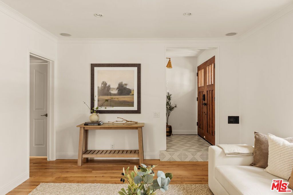 Nestled in the highly sought-after North Kentwood neighborhood, this beautifully updated pool home blends timeless character with thoughtful modern upgrades. Offering 3 bedrooms and 2 bathrooms with single-level living, the home welcomes you with warmth, natural light, and refined finishes throughout. Step inside to discover newly refinished hardwood floors that flow seamlessly throughout the home, enhancing the bright, airy interiors. Classic architectural details such as coved archways and built-in shelving add charm and sophistication, while the open layout creates an effortless connection between living, dining, and entertaining spaces. Built-in speakers throughout the home create the perfect atmosphere for everyday living and entertaining. The heart of the home is the newly remodeled kitchen, featuring quartz countertops, a designer backsplash, a new farmhouse sink, and stainless steel appliances, perfectly blending style and function for everyday living and hosting alike. The spacious primary suite offers generous closet space, a bathroom with dual sinks, and direct access to the backyard, one of three access points that create seamless indoor-outdoor flow. Outside, a private oasis awaits, featuring a sparkling pool and spa, lush landscaping, and space for both quiet relaxation and memorable gatherings. The pool features an automatic protective cover that may be walked on, along with new landscaping and drainage. Whether enjoying a peaceful morning or entertaining under the California sun, this backyard delivers the ultimate indoor-outdoor lifestyle. The garage has been converted to a bonus room/flex space/pool house with new flooring, offering additional versatility for a home office or gym. Ideally located near neighborhood favorites, including little Vons, shops, a yoga studio, and everyday conveniences, this N Kentwood gem offers comfort, style, and an exceptional Westchester lifestyle. The main house is 1,483 sq ft, and the converted garage is approximately 350 sq ft.