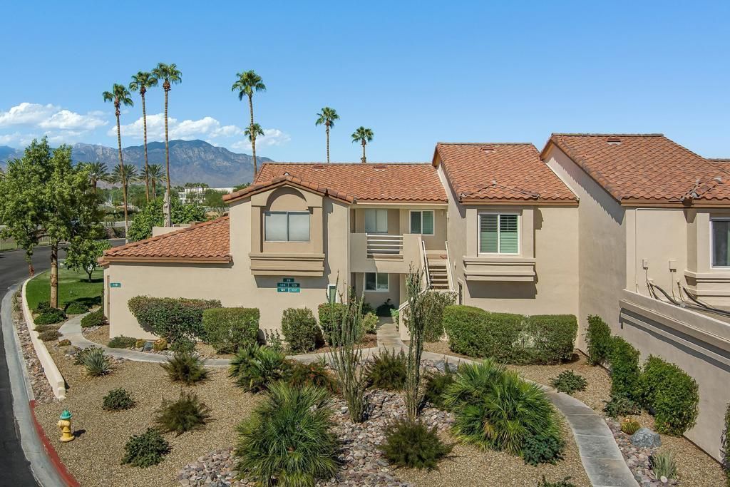 One bedroom, one bath lower-level condo with golf course, mountain and lake views. The condo has a stackable washer & dryer inside condo and a one car garage. One of the community pools is right across the street. Palm Royale is a gated community within walking distance to Indian Wells Tennis Gardens. Unlimited golf is included in the HOA dues on the Ted Robinson designed par-3 golf course. This is the Valley's Premier Short Course! Clubhouse & Pro Shop. Minutes from destination golf, dining & shopping. Community amenities include 6 pools & spas, lighted pickle ball and tennis courts and Helix Disc Golf. HOA fees also include basic cable, and internet, landscape maintenance, & trash service.