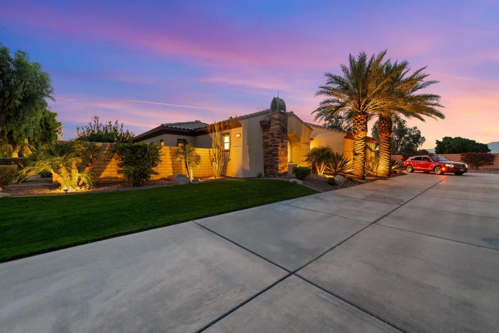 Beautiful Stonegate property in Bermuda Dunes! From the moment you walk up the front path to the front door, this impressive home will excite you. Designed for comfort, style, and incredible entertaining, this property truly merges indoor and outdoor living in the best way. The massive backyard is a showstopper, featuring a sparkling pool, relaxing spa, underwater bar stools, lush palm trees, beautiful landscaping, and mountain views. Sliding doors open wide so the outside flows seamlessly inside, creating the perfect setting for gatherings large or small. Inside, the heart of the home is the spacious great room kitchen with a large center island, 5-burner stove, stainless steel appliances, and a buffet counter ready for entertaining. And the outdoor kitchen is just as impressive, featuring a grill, griddle, burner, built-in ice chest, awning,refrigerator, large screen TV, and sunshades that provide comfort and shade while offering an incredible space for hosting family and friends. The private casita has its own entrance, making it ideal for guests who want privacy and comfort. There is also a separate lounging room with two additional bedrooms, giving everyone room to spread out. Whether you need space for extended family, a playroom, an office, or even another bedroom, this floor plan offers so many opportunities. The primary suite is a dream, complete with an amazing custom closet featuring drawers, pull-outs, lighting, and abundant space. The spa-like bath includes a deep jetted tub, walk-in shower, and separate vanities. And let's not forget the 3-car garage, immaculate and beautifully finished with slurry-coated floors, so pristine you could practically perform surgery in there. This Stonegate beauty offers luxury, flexibility, and fabulous entertaining space all in one gorgeous Bermuda Dunes property.