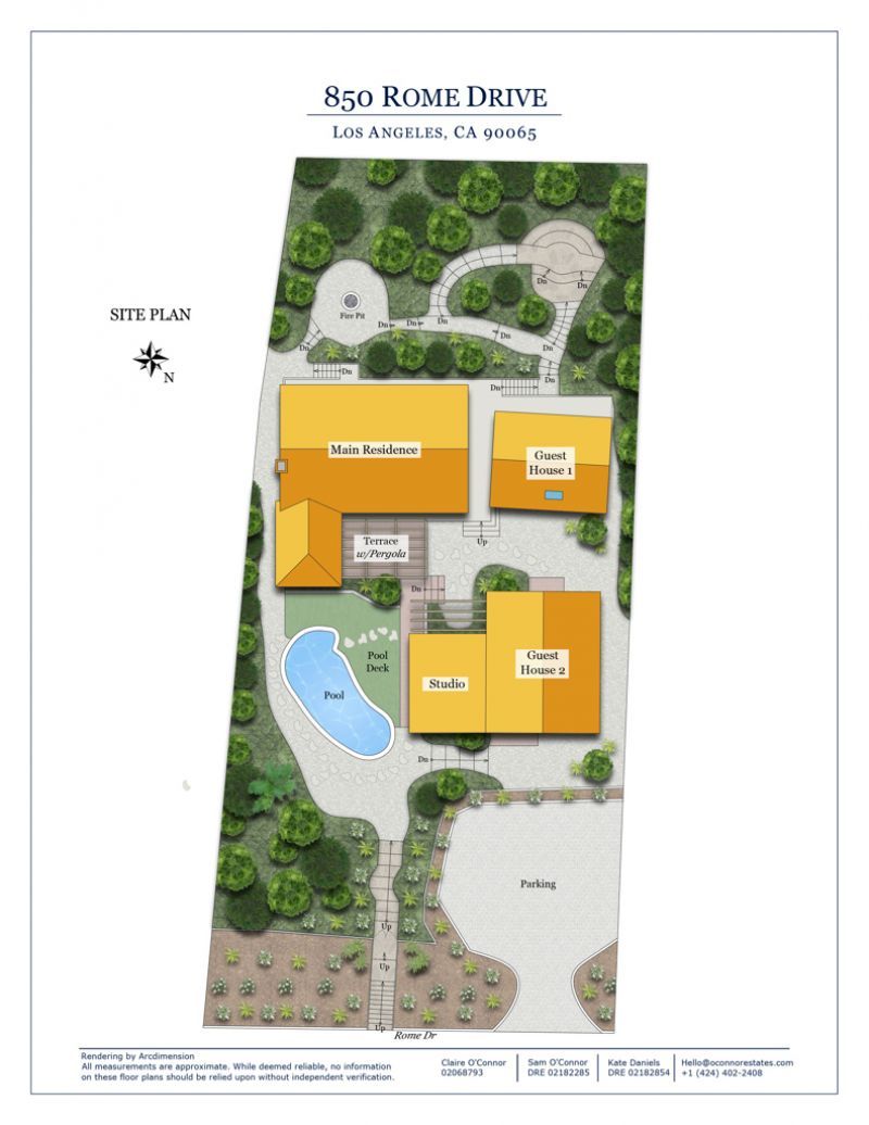 Perched high above the street, 850 Rome Drive is a fully reimagined property composed of a main house, two-story ADU with its own kitchen, pool house, and a guest house tucked into the trees all woven together by landscape, light, and a sense of quiet escape. Each space is warm, modern, and deeply livable, with Douglas fir and elemental materials layered alongside soapstone, travertine, and hand-finished surfaces that give the home a distinct point of view. The main house is grounded in a sense of calm. Oversized windows and doors pull in natural light and surrounding greenery. The wood-rich kitchen feels like a modern treehouse: open, elevated, and inviting. Outside, stone paths and wooden steps connect the sculptural pool and courtyard to a more secluded backyard and fire pit, with decks extending from nearly every structure to take in the hillside views. The landscaping is intentional, sophisticated, and full of life, for a property that feels both cohesive and expansive. With four structures in perfect harmony, a pool on one side and a fire pit on the other, this rare Mt. Washington compound offers a uniquely layered living experience. One that invites gathering, retreat, and the feeling of a private world all your own.