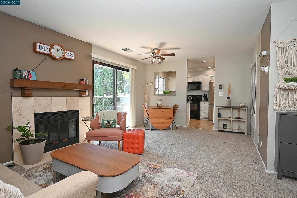 Experience the perfect blend of style and convenience in this super cute upper-end unit! This move-in-ready, 2-bedroom, 2-bathroom condo features a bright, open floor plan anchored by a cozy fireplace and a dedicated dining area. The updated kitchen shines with granite countertops, a subway tile backsplash, and newer appliances. Both bedrooms are generously sized, featuring a primary suite with a specialized closet system and its own private deck. The bathrooms have been fully refreshed with modern vanities and fixtures. Enjoy the convenience of a large indoor laundry room equipped with front-loading washer and dryer. This home boasts unique design elements that truly must be seen to be appreciated. Relax on either of the two updated balconies, including one overlooking the sparkling community pool. Situated in a quiet, well-maintained complex near the borders of Concord, Martinez, and Pleasant Hill, you are minutes from DVC, top-rated schools, 680 freeway access, restaurants, and shopping. Open Saturday 4/11 and Sunday 4/12 from 1-4pm