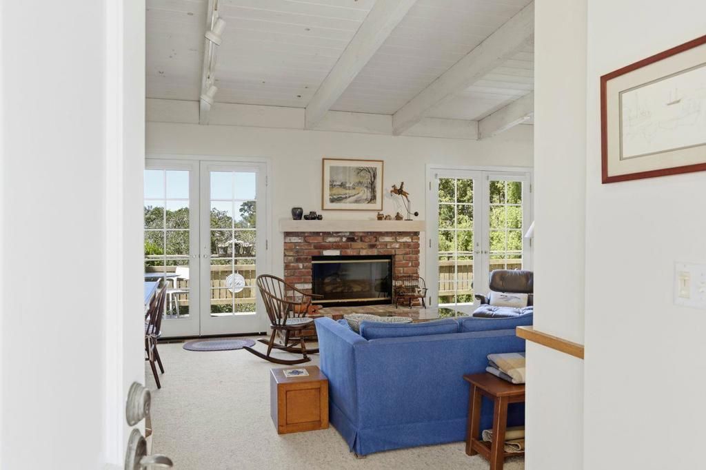 The Twig is a delightful cottage of charming simplicity ideally located just four blocks to Ocean Avenue and four blocks above the white sands of Carmel Beach. First time on the market in over 40 years, this single-level home offers approximately 1,288 sq. feet of comfortable living in a prime Carmel-by-the-Sea location. The home features a spacious living room/dining room combination with high, white-washed beamed ceilings, a gas-log fireplace, built-in bookshelves, and access to a large deck with peeks of the ocean. The updated kitchen complements the functionality of the floor plan, which includes two bedrooms and two full bathrooms. The primary bedroom features a gas-log fireplace and French doors opening onto a lovely patio and garden. The private, fenced outdoor spaces are low maintenance and offer a peaceful setting, making this a wonderful place to call home.