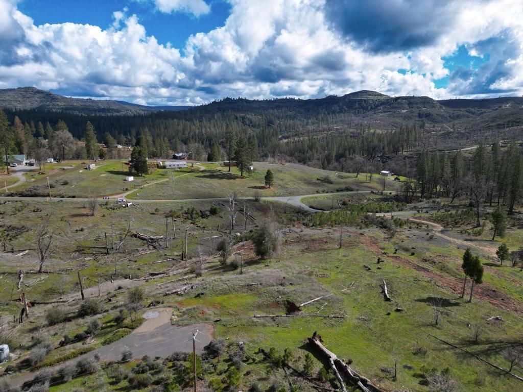 Stunning parcel with panoramic views of forests, cliffs, and rolling hills. An active heard of deer frolic in the grasses. Lots of firewood, including oak, available on lot, and numerous Ponderosa pines and a few incense cedars making a comeback on the hill below. The center of the property has a seasonal creek that in good rain years flows for several months. An incredible quality asphalt driveway in great condition goes to prior home site, while passing 2 leveled pads for large water tanks. Cellphone signal with at least 2 major carriers is strong here. Electricity comes from a nearby pole, septic and well on site, buyer to investigate condition. Nearest groceries and hardware store 15 minutes away in Mountain Ranch. As-Is Sale. Make this land into your dream home!