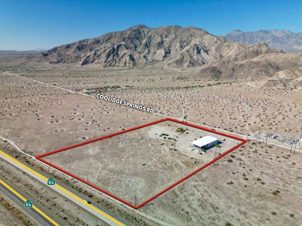 Approx. 5,200 SF warehouse/shop building on 9.38 acres. Fully fenced. Warehouse includes four 10'x12' roll-up doors and approx. 3,600 SF attached shade structure. Convenient location with frontage on Expressway 86. 22 miles to Coachella, 60 miles to El Centro, 85 miles to Mexico border. Great for owner-user or investment purposes. Sale will include a water truck, and CASE skip loader tractor. Call (760) 360-8200 for more details or set up appointment to see the property. Appointment only. Beware of dogs.